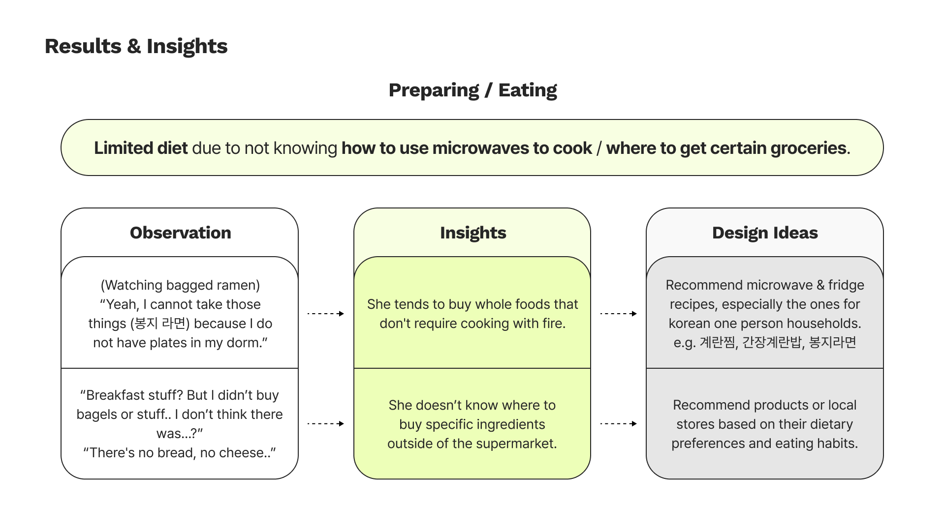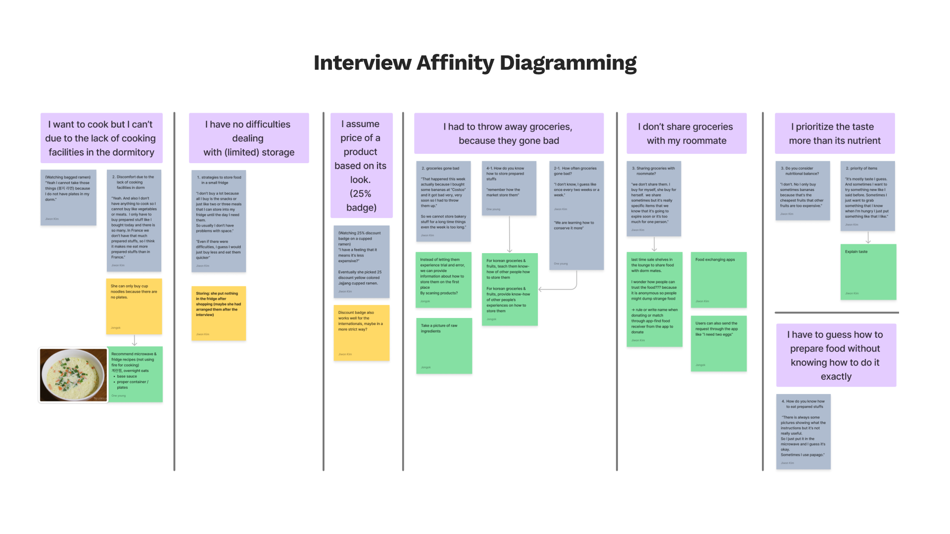 Before designing the application, we conducted user research to better understand the needs of our target audience. The application design focuses on two key functions: it helps users overcome language barriers in cooking by recommending and explaining dishes based on color, making it easier for them to prepare meals and discover foods that match their tastes. Additionally, it promotes the effective use of shared spaces by enabling students to exchange leftover ingredients and engage in communal cooking.